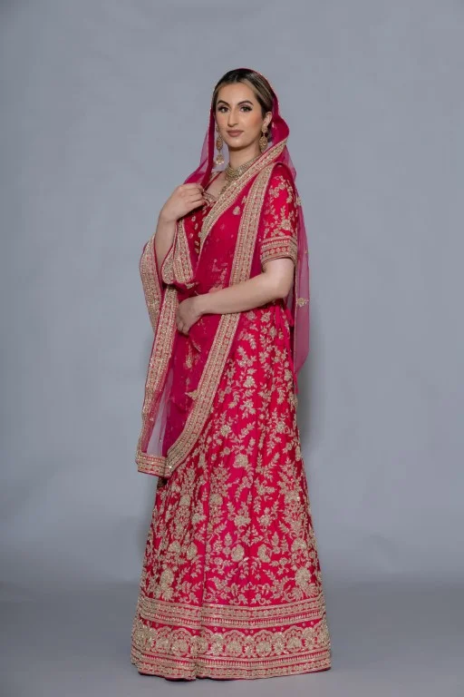 Hot Pink Traditional Bridal Lehnga with Hand Embroidery, Adorned with Zardozi, Dabka Stone Work And Tilla Work